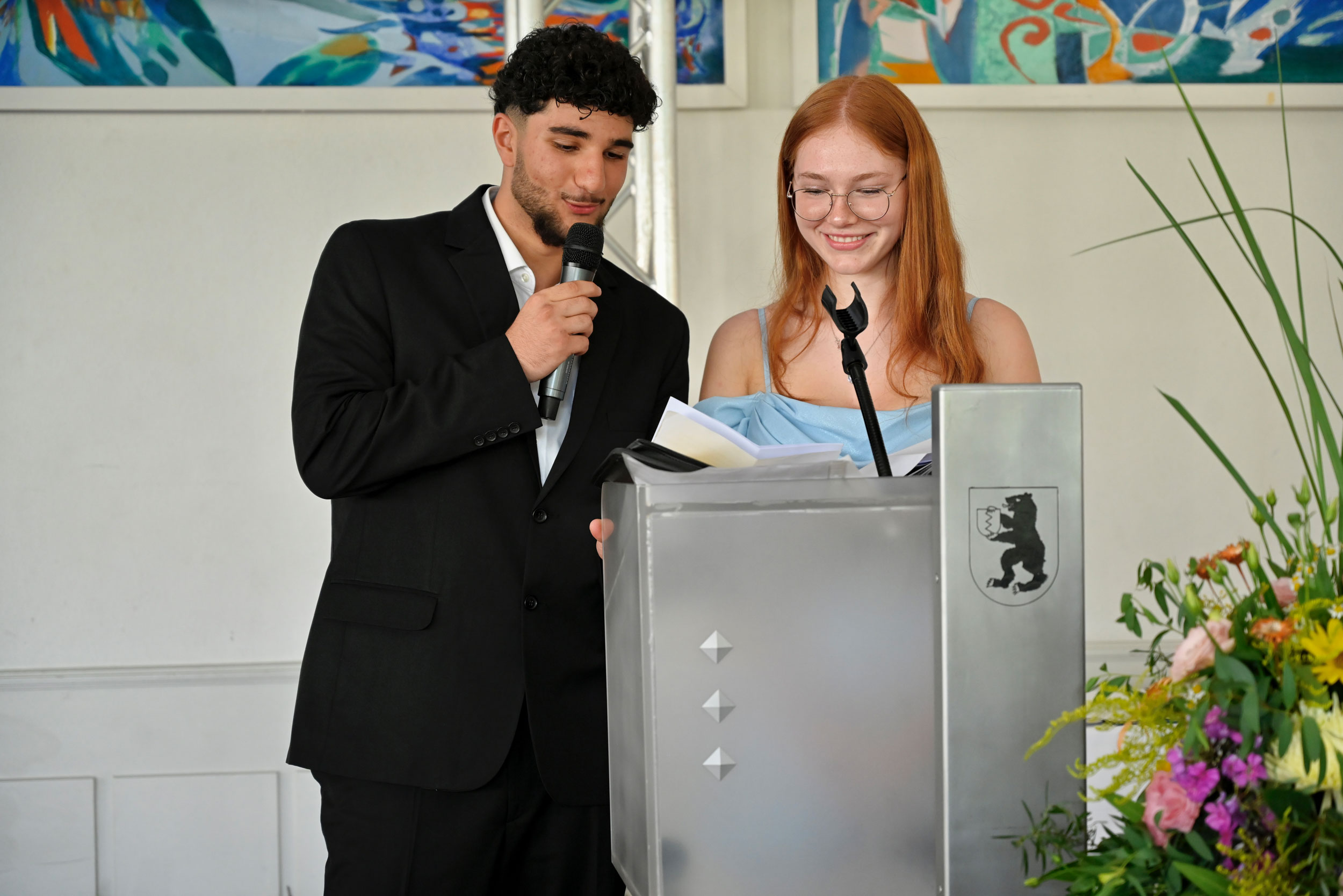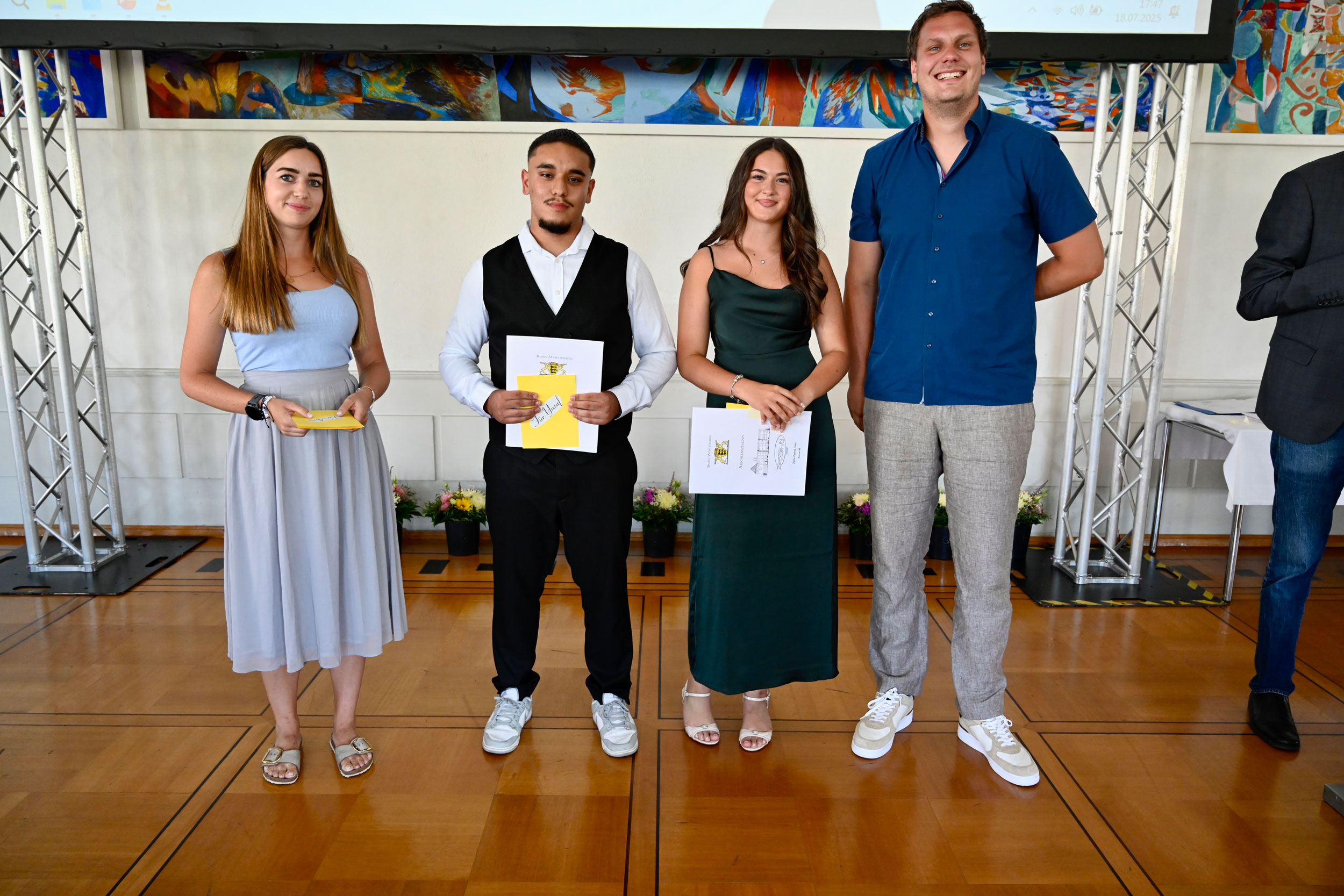 Er habe gehört, es sei ein echt guter Jahrgang gewesen, meinte im Anschluss Bernd Walz, Fachbereichsleiter für Bildung und Sport, als Vertreter der Stadt Singen, anerkennend vor den Schüler`innen, Eltern und Gästen der Feierstunde. Dabei hätten sie es nicht leicht gehabt, erlebten sie doch die Corona-Jahre in „voller Bandbreite“, in denen das Lernen eine echte Herausforderung war. Als Fachkräfte werden sie nun überall gebraucht: „Nutzen Sie Ihre Fähigkeiten und Kenntnisse und tragen Sie dazu bei, dass unsere Demokratie stark bleibt.“ Und damit auch die Zeppelin-Realschule stark bleibe, dafür investiere die Stadt Singen in einen Erweiterungsbau trotz knapper Kassen. Diese Nachricht sorgte für großen Applaus bei allen Anwesenden.